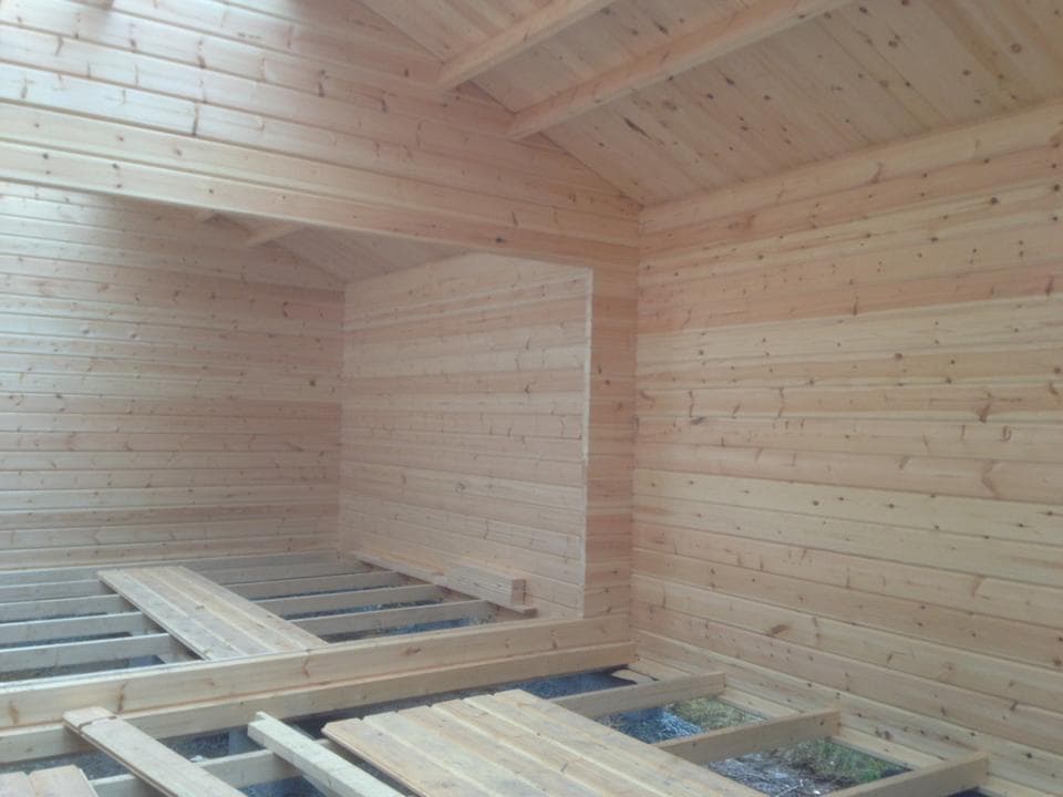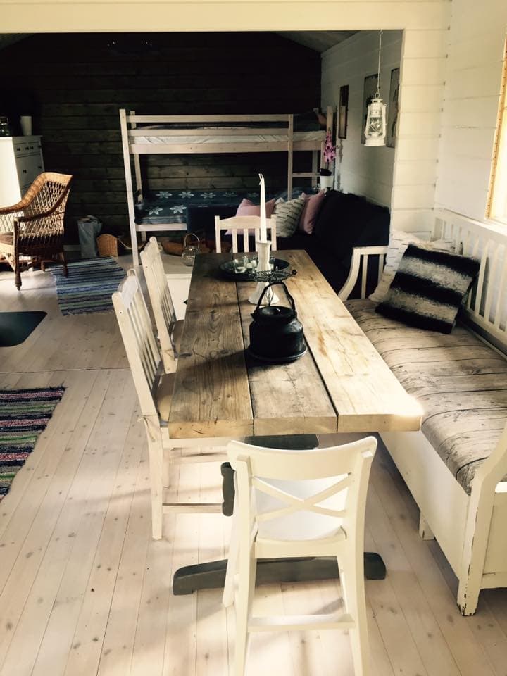Här ser ni ett exempel där man öppnat upp mellanväggen för att skapa en stor öppen planlösning. Virket från mellanväggen och lite spillvirke räckte precis till att bygga ett utedass till familjen.