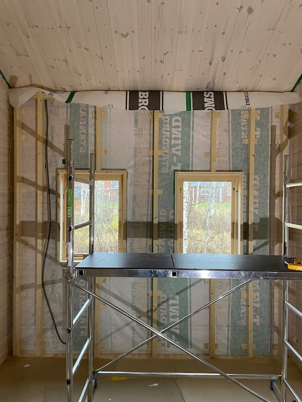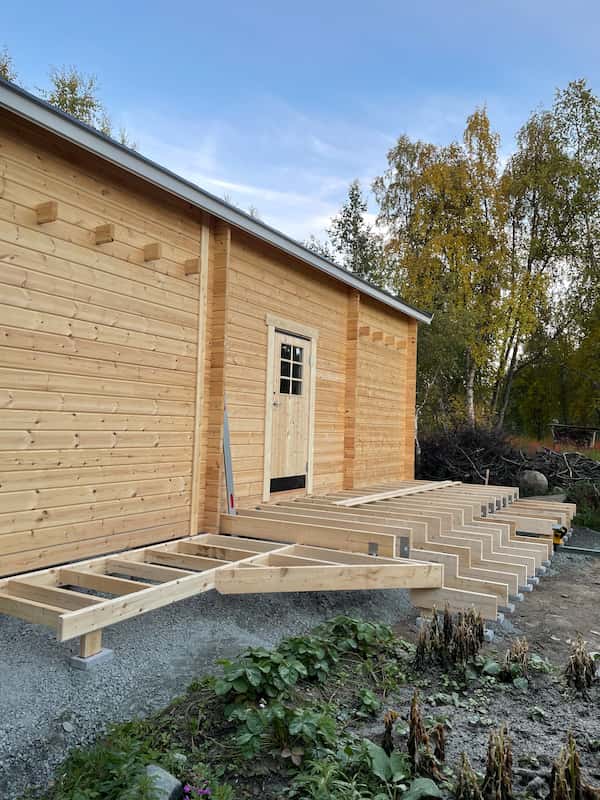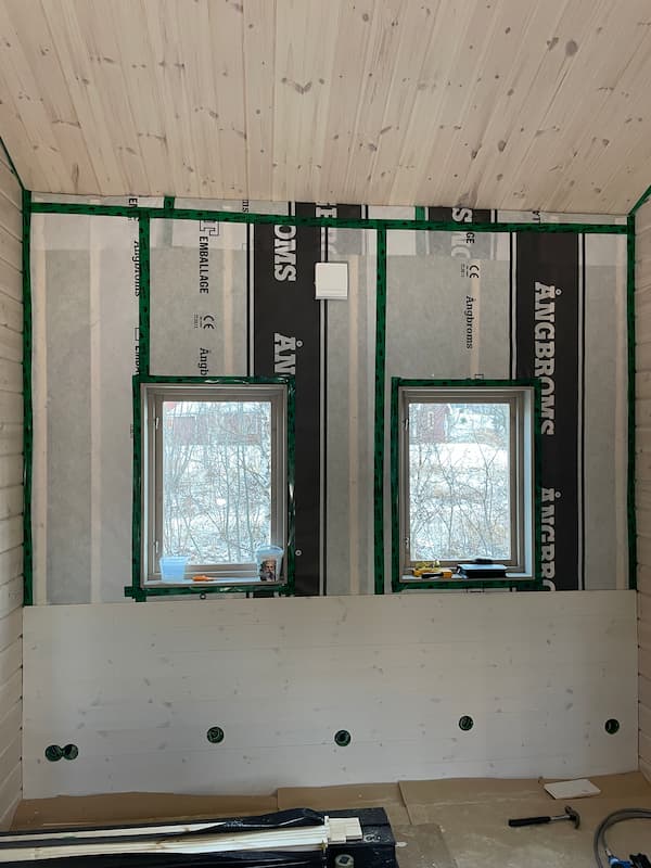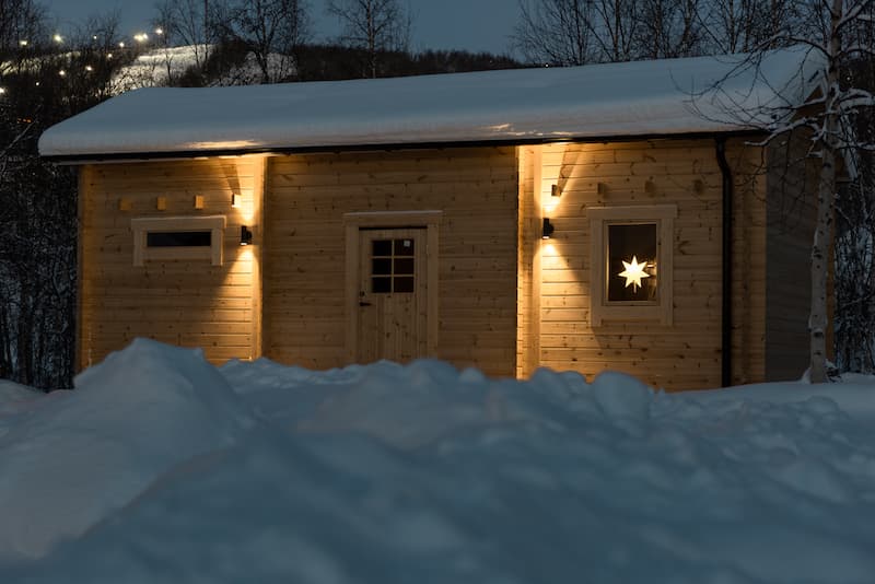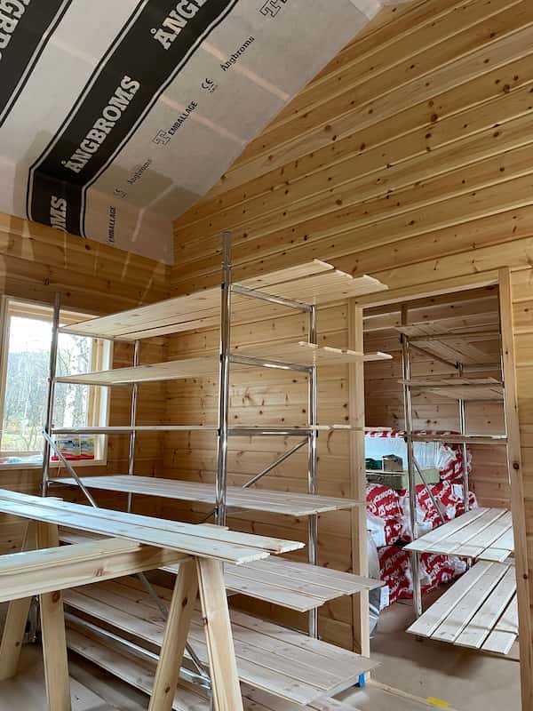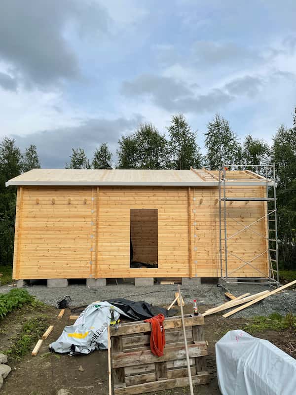 Detta mysiga attefallshus på 30 kvm har Anton och Micaela byggt i Hemavan. Hela familjen var delaktig i byggprocessen och det tog ca 4 månader att bli helt färdig. Anton och Micaela har gjort det mesta själv förutom grusbädd och eldragning. Attefallshuset används främst som kontor då Anton är egenföretagare och Micaela jobbar mycket på distans. Ett av rummen har inretts som varmförråd och de två andra rummen som kontor.