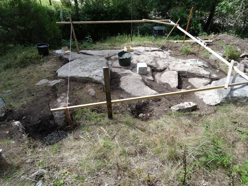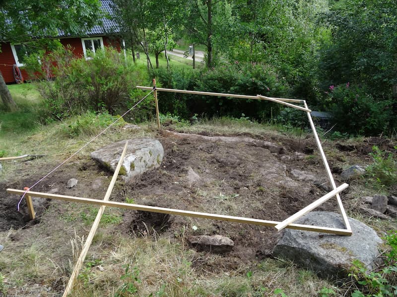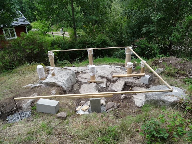Lars valde kombinera egengjutna plintar med prefabricerade plintar där det var möjligt.