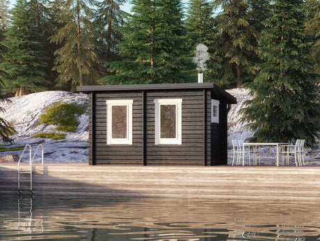 När du bestämt dig vilken modell av bastu du önskar så kan du enkelt komponera ihop din bastustuga med önskade tillbehör direkt i vår webshop. Beroende på vilken bastustuga du väljer, och storleken på basturummet, kan du enkelt välja bland utvalda Harvia bastuaggregat som fungerar bra med din valda bastustuga. Du kan även välja att lägga till andra bastutillbehör som exempelvis vattenvärmare, rökrörsskydd, takavvattningsystem, skruvsats och önskad takbeläggning. Du kan välja mellan takshingel eller plåttak utifrån vad som passar bäst.