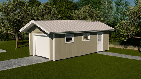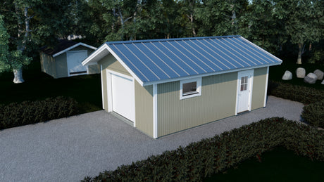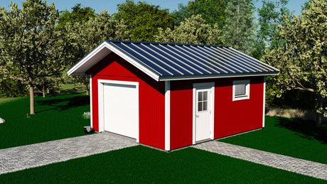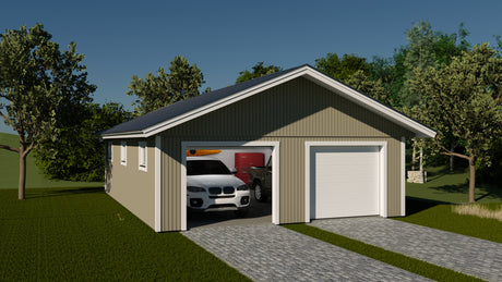 Vi förstår att varje kund har unika önskemål och behov när det kommer till att bygga ett garage. Vi har ett stort antal garagebyggsatser som passar oavsett om du söker ett litet eller stort garage. Om du vill kan du enkelt öppna upp våra modeller i vår 3D-konfigurator och göra de justeringar du önskar. Där kan du enkelt justera allt ifrån storlek, taklutning och placering av dörrar, fönster och portar och välja bland ett stort utbud av plåttak i olika profiler och färger.