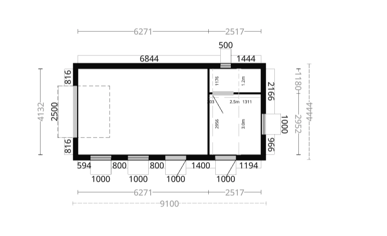 HUSKONFIGURATION - 1.0.4442391 ═══════════════════════════════════════════════════════════════ BYGGNAD: • Storlek: 4444×9100mm (40.44m²) • Total byggarea: 4444mm x 9100mm (40.44m²) • Vägghöjd - Väggpanel: 2.387m • Taktyp: Fackverktakstol () • Takfärg: ingen • Takavvattning: Nej • Färg vägg: Obehandlad • Färg Vindskivor och foder: Grundmålad vit TEKNISKA SPECIFIKATIONER: • Takvinkel: 22° • Nockhöjd: 3.584m • Nocklängd: 10.080m • Längd Taknock till takfot: 2.901m • Undertak: Undertak med kondensduk & läkt ISOLERING: • Tak: 145mm • Vägg: 95.00mm OSB: • Tak m²: 40.04 • Vägg m²: 96.70 INNERVÄGG: Storlek m²: 15.95 Dörr: 1x Innerdörr 8x21 Tillbehör: MODULER (29 st totalt): • 1X Modul 10x12 3-glasfönster 1-luft vridfönster - m12 • 2X Modul h4v • 8X Modul m6 • 2X Modul h4h • 2X Modul m3 • 1X Modul m30 • 1X Modul 5x5 2-glasfönster sidohängt - m12 • 2X Modul h4v • 8X Modul m6 • 2X Modul h4h • 2X Modul m3 • 1X Modul m30 • 2X Modul Ytterdörr med smalt fönster 10x21 - m12 • 2X Modul h4v • 8X Modul m6 • 2X Modul h4h • 2X Modul m3 • 1X Modul m30 • 2X Modul 10x6 2-glasfönster överhängt - m12 • 2X Modul h4v • 8X Modul m6 • 2X Modul h4h • 2X Modul m3 • 1X Modul m30 • 1X Modul Takskjutport Hörmann 21x25 - m30 • 2X Modul h4v • 8X Modul m6 • 2X Modul h4h • 2X Modul m3 • 2X Modul h4v • 8X Modul m6 • 2X Modul h4h • 2X Modul m3