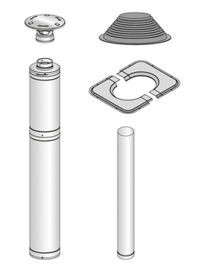 Et 1 meter langt uisolert røykrør i rustfritt stål er også inkludert. Ytterligere 0,5 (WHP500) og 1,0 (WHP1000) meter lange tillegg er tilgjengelige for stålskorsteinen.