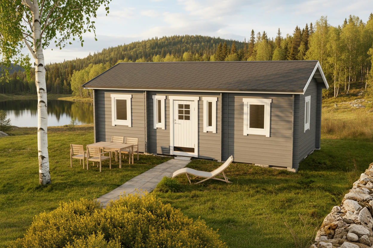 - Vi produserer våre hytter av kvalitetstømmer av senvokst Norrlandsfuru.
