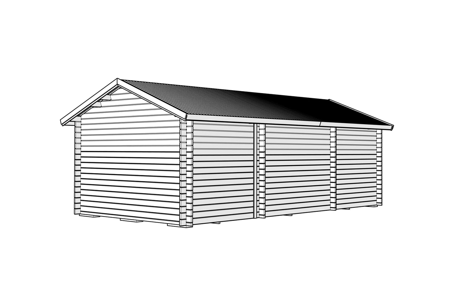 Vekt: Hytta leveres som et byggesett og kommer vanligvis i 5 trepakker. Totalvekt ca.: 2970 kg (per pakke: 1000 kg / 650 kg / 650 kg / 350 kg / 320 kg)