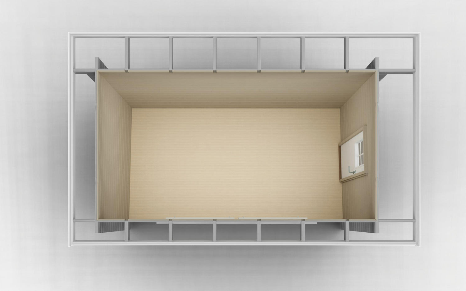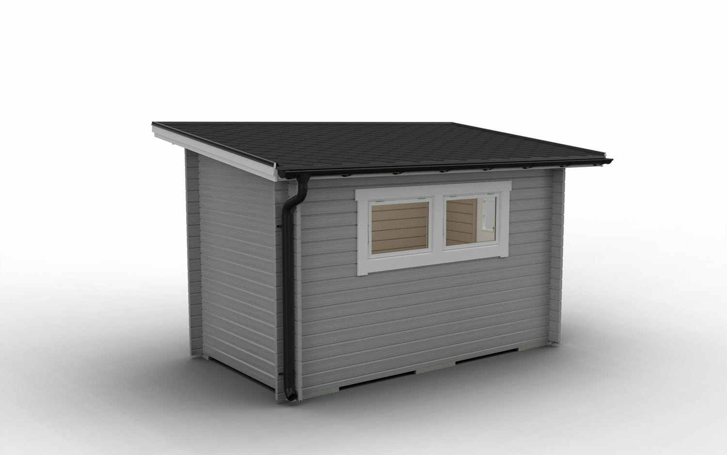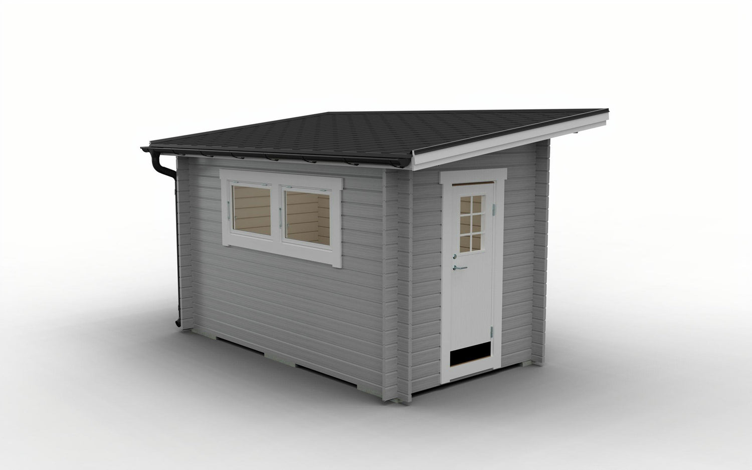 Vinduer: 2 stk. 670×945 mm åpningsbare med isolerglass og beslag, vinduer plasseres på valgfritt sted og hull til disse tas opp av kunden.