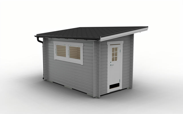 Vekt: Hytta leveres som et byggesett og kommer vanligvis i 2 trepakker og 1 inngangsdør i en pappeske. Vinduer som er inkludert er vanligvis pakket i trepakkene. Totalvekt ca.: 1030 kg (per pakke: 750 kg / 250 kg / 30 kg)