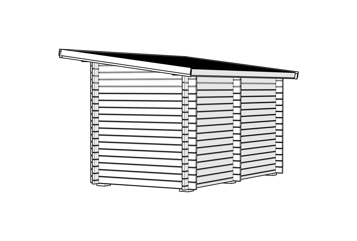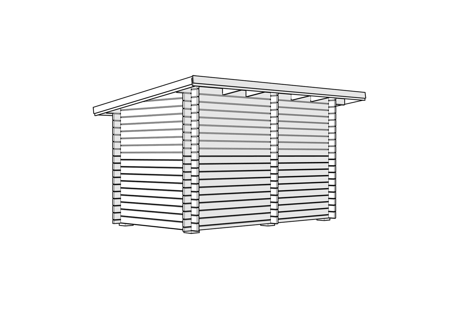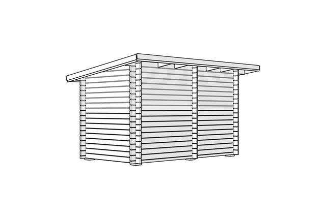 Vår badstue med skråtak på 8 kvadratmeter kan nå tilpasses dine ønsker. Vi leverer dette byggesettet med tette vegger, som gjør at du selv kan velge plassering for dør og vindu og sage hullene til disse selv.