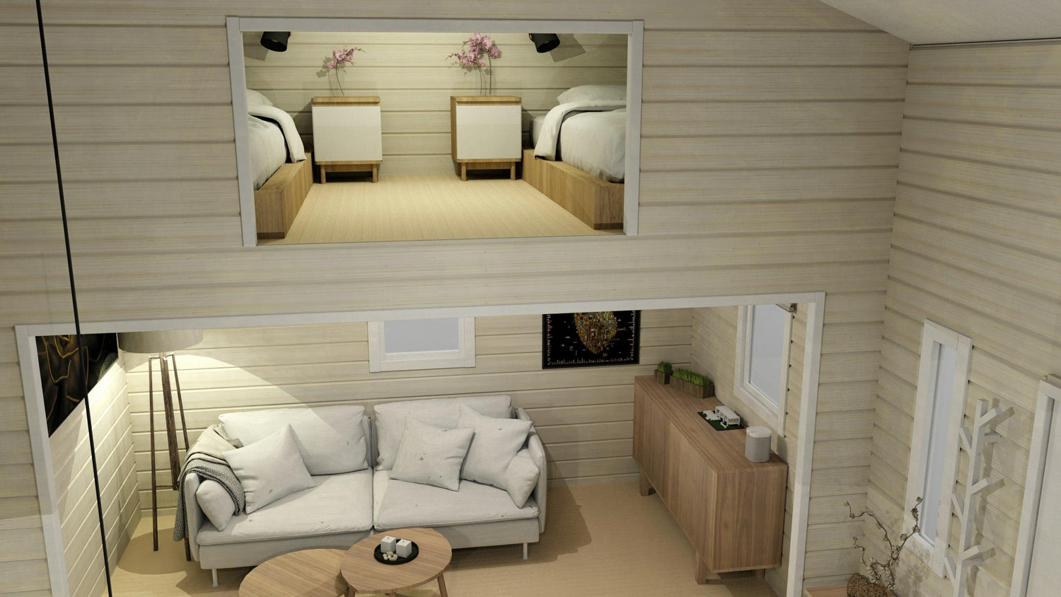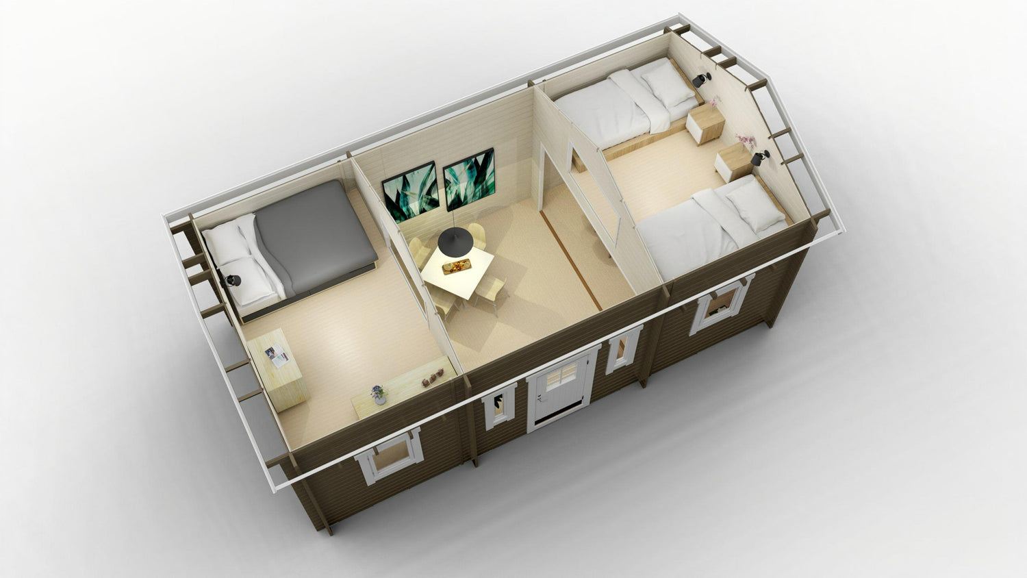 Vårt rymligaste attefallshus på 30 kvm har tre rum och två loft som fungerar utmärkt som sovplatser vilket ger möjligheter att utnyttja större delen av boytan till sociala utrymmen. De tre rummen består av ett 2st 9 kvm stora sovrum på var sin sida om allrummet som är 12 kvm.
