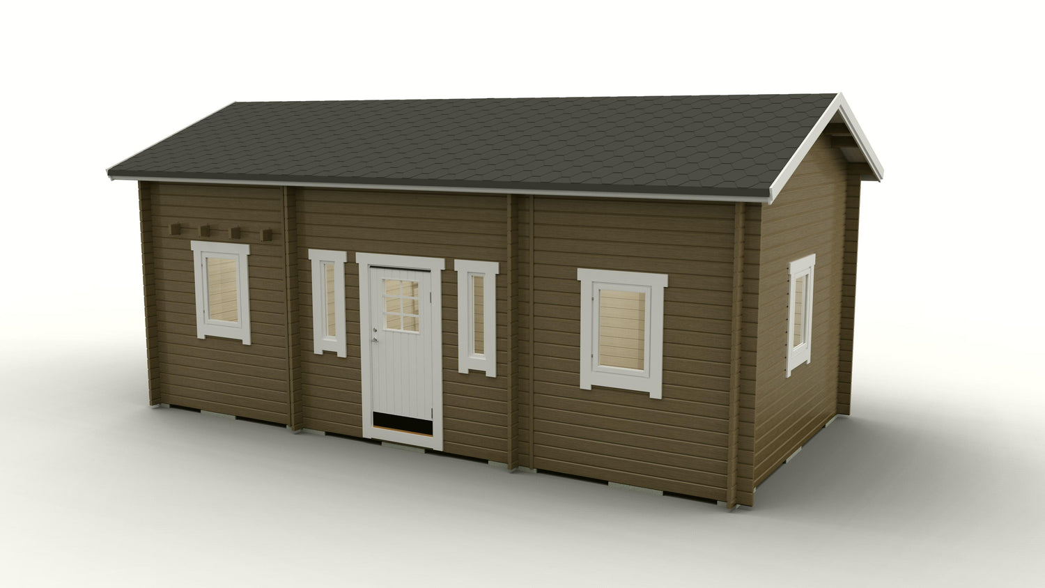 Vikt: Stugan levereras som byggsats och kommer normalt i 6st virkespaket + 1st dörr i kartong.