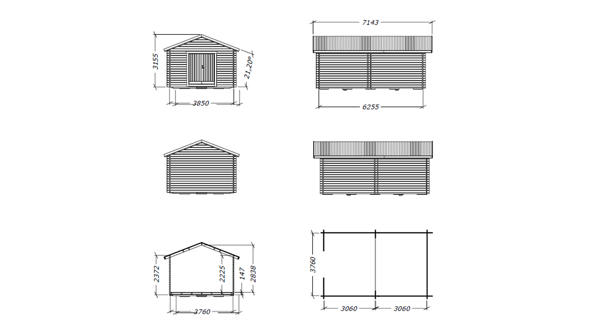Förrådet levereras som byggsats och kommer normalt i 4st virkespaket + 1st pardörr i kartong. Vikt på allt ca: 2300kg (900 + 750 + 300 + 300 + 50kg)