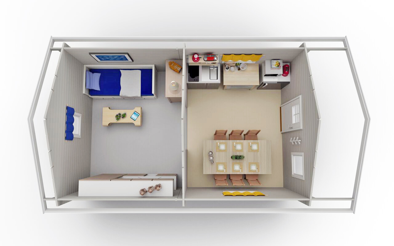 Attefallshus tät grundmodell torp 24 kvm - 2 rum fördelat på 15 kvm + 9 kvm