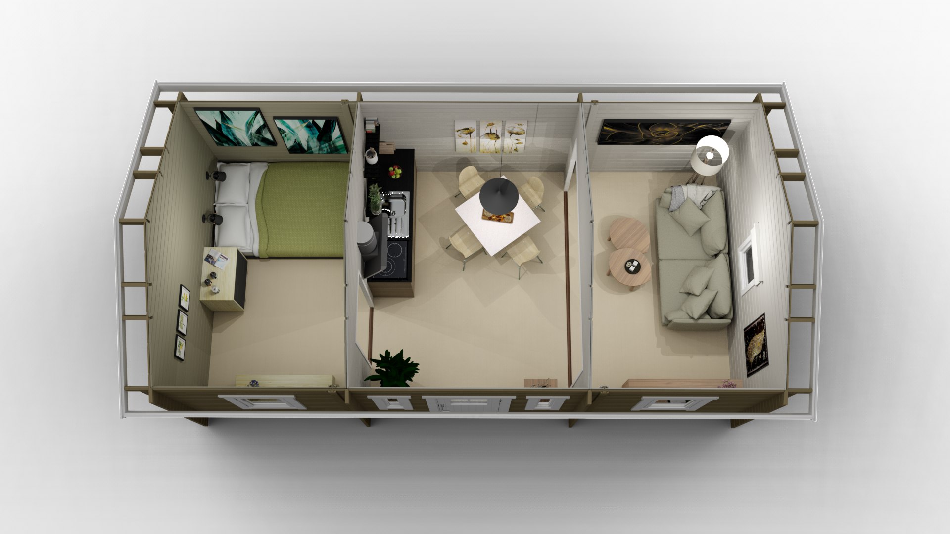 Detta tre rums attefallshus kan enkelt anpassas efter dina behov. Byggsatsen levereras med grundplanlösningen med ett 12 kvm allrum/kök och två sovrum på 9 kvm vardera. Vill man ha en öppen planlösning så kan man göra en större öppning i en av innerväggarna. Om man istället vill optimera antalet sovplatser kan man sätta in mellanväggar i sovrummen om man vill få ytterligare sovrum eller få plats be exempelvis badrum, bastu eller förvaring.