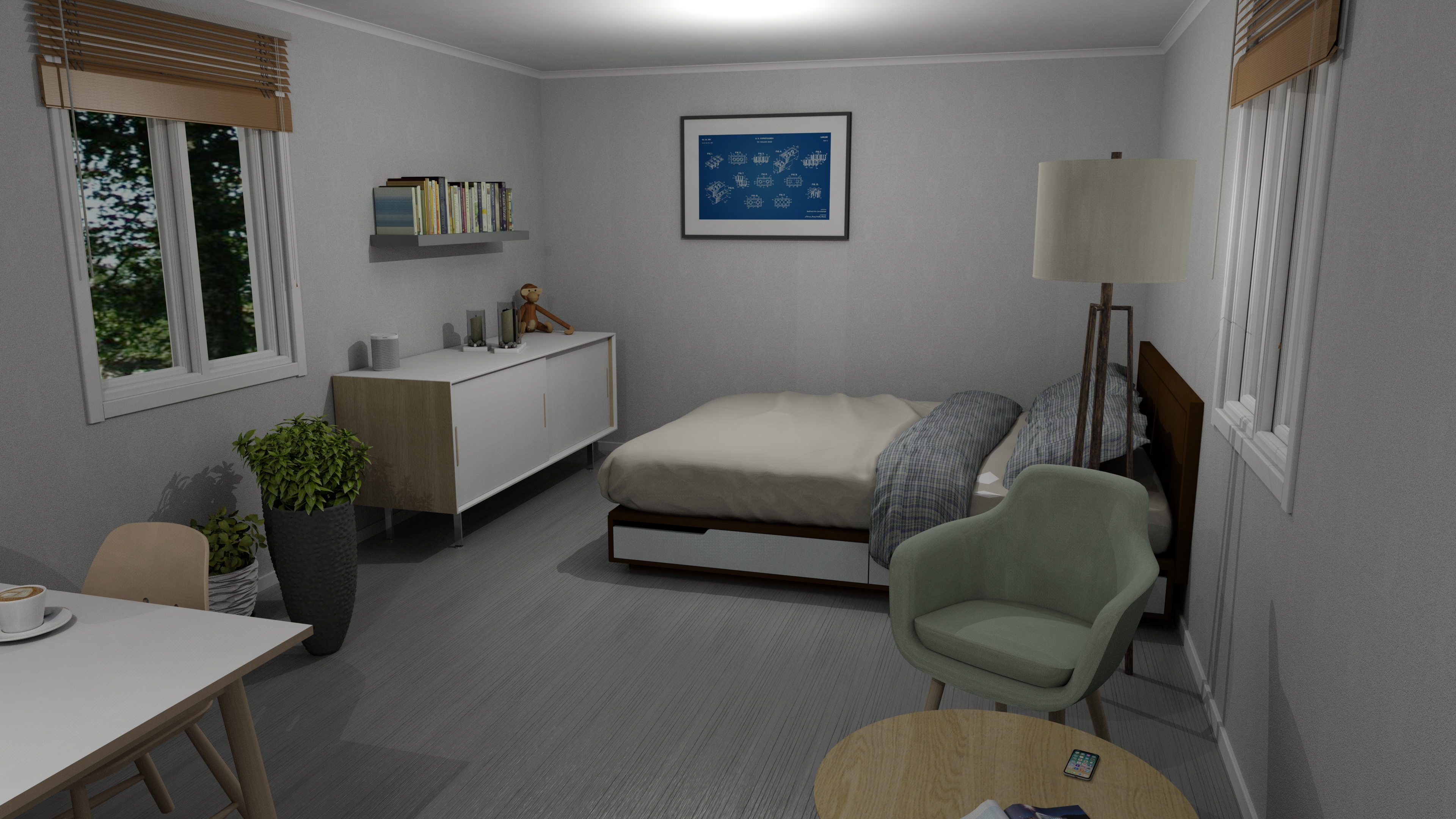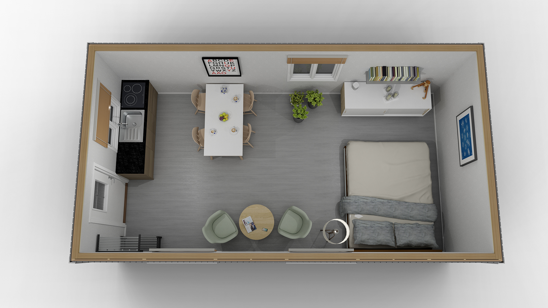 Attefallshus 29 kvm M1 har ytterdörren placerad på gaveln vilket ger fördelar vintertid då inte snöras blir ett problem. Lättmonterad byggsats avsedd för gjuten grund. Den rektangulära planlösningen ger möjligheter att dela upp ytan i mindre rum eller nyttja en öppen planlösning.