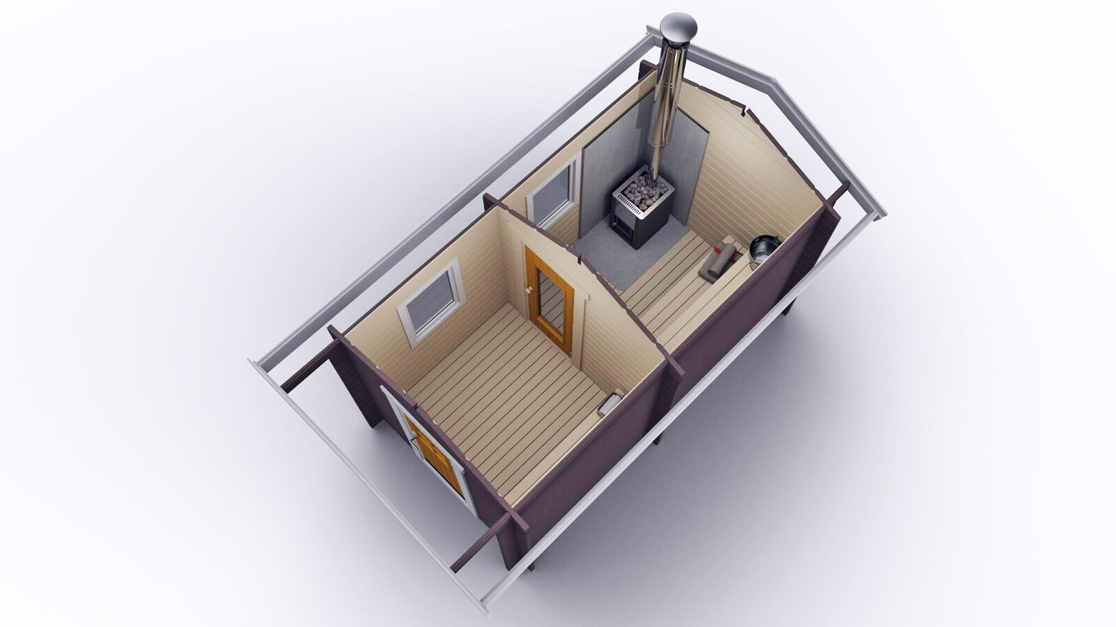 Det ingår 2st fönster till denna modell. Här kan du tillbringa många sköna stunder. Bastun inrymmer bastudel men även en omkläd/relax. Flotten är anpassad för 4-6 personer.