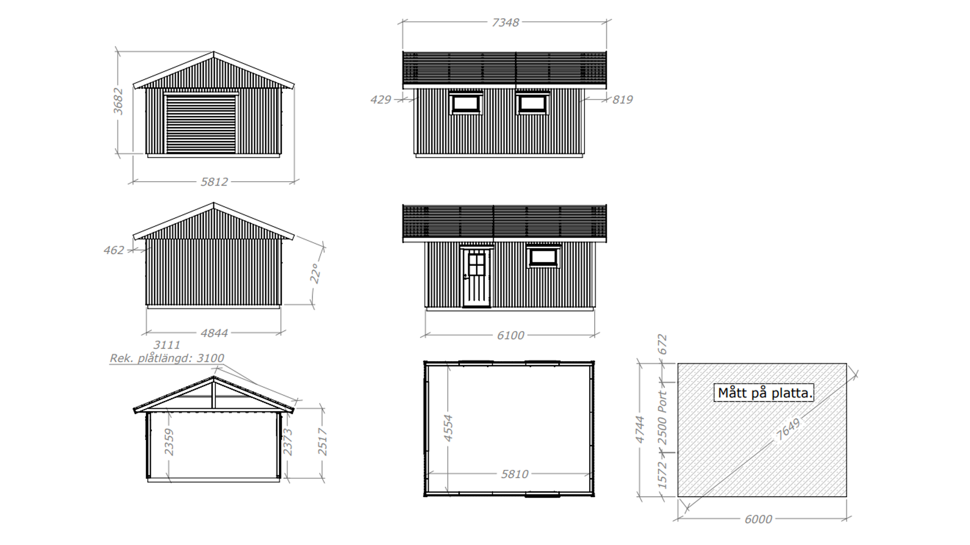 Garaget är förberedda för montering på betongplatta, ej för plintgrund.