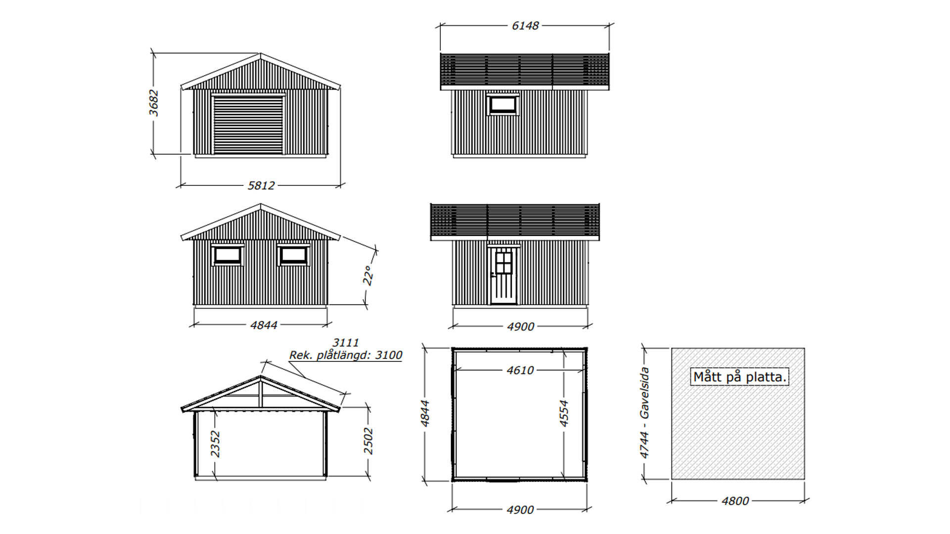 - Alla garage levereras med takstolar som är anpassade för snözon 4,5. Kontakta oss för högre krav.