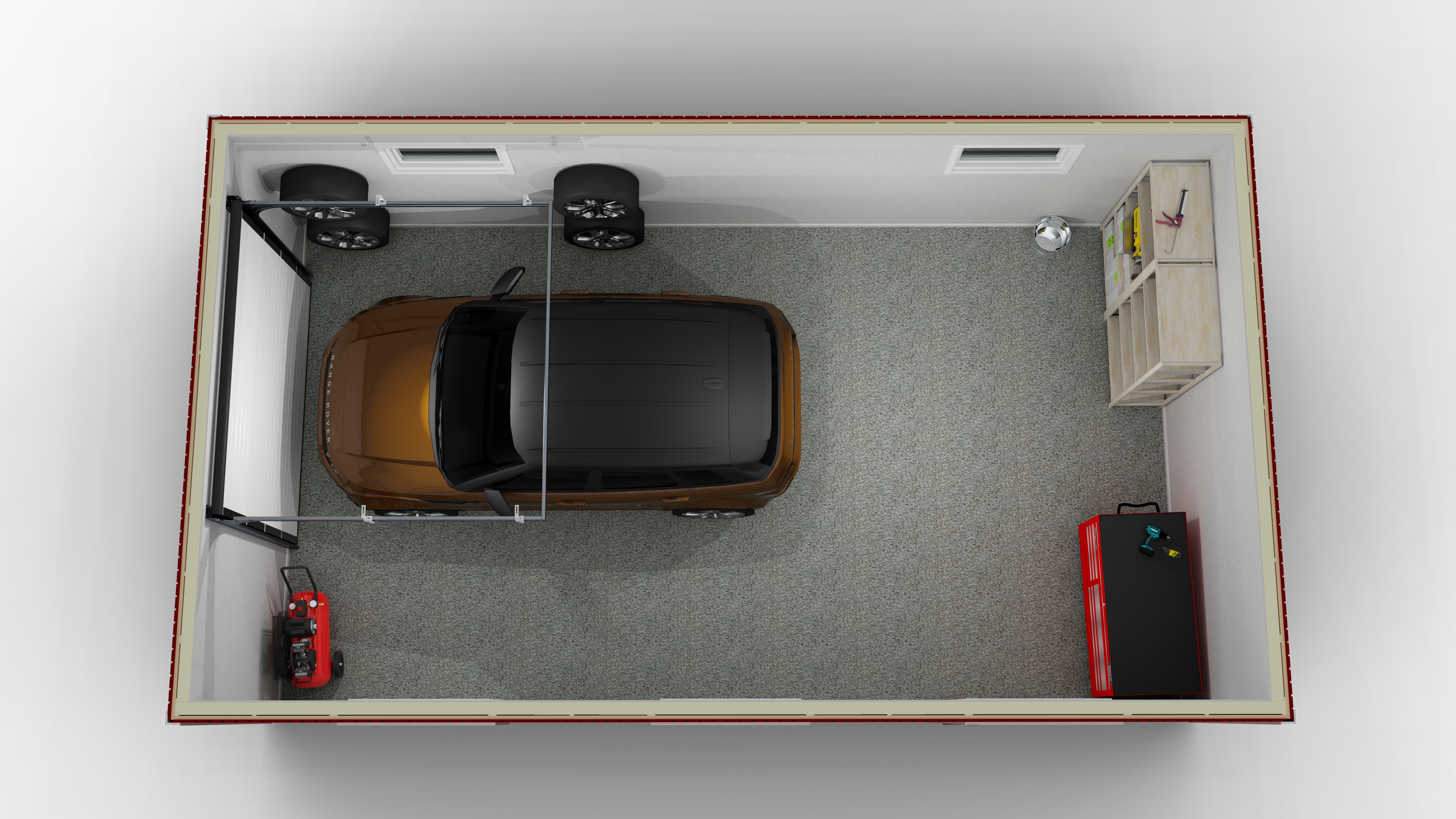 Med vårt rymligaste enkelgarage får du plats med både bilen och annan förvaring som exempelvis arbetsbänk eller hyllsystem. Denna garagemodell har en separat ingång från långsidan vilket är fördelaktigt om man håller garaget uppvärmt. Genom att nyttja den mindre ingången minskar du värmeförslut jämfört med att du får öppna garageporten. I vårt grundutförande levereras vårt Enkelgarage 41 kvm med en klassisk slagport 25x21 men du kan även välja att uppgradera till en takskjutport från Hörmann där även garageportsmotor finns som tillval.