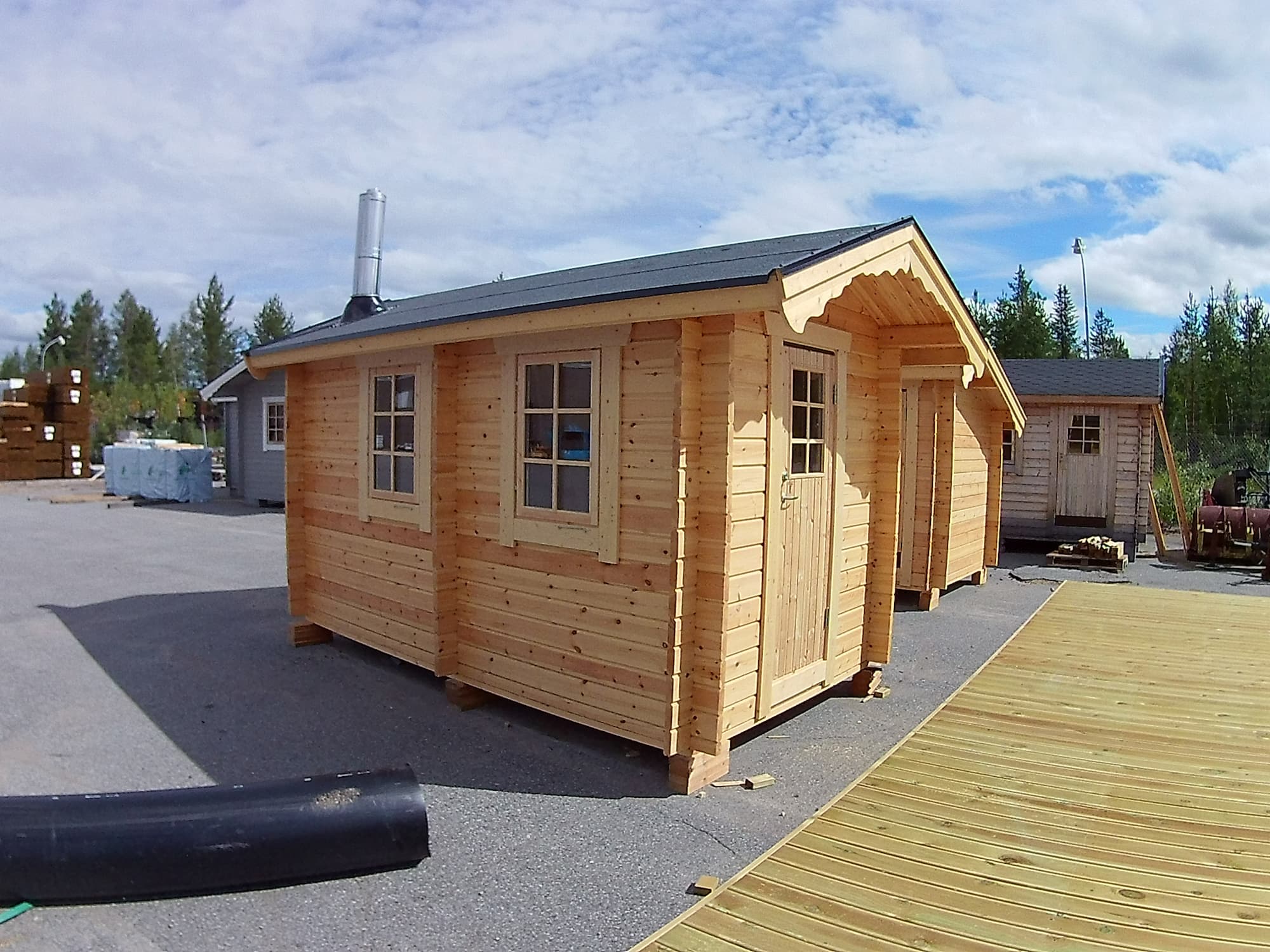 Harvia Kaminpaket (finns som tillbehör) Yttre takbeklädnad (takshingelpaket finns som tillbehör) Handtag och låscylinder (finns som tillbehör) Spröjs till fönster (finns som tillbehör) Skruvsats (finns som tillbehör)