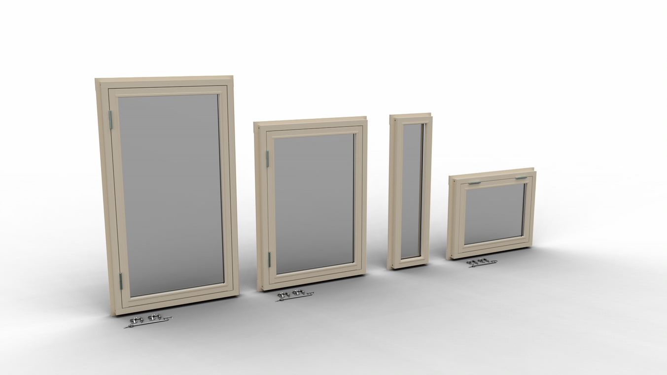 Yttre takbeklädnad (takshingelpaket finns som tillbehör) Handtag och låscylinder (finns som tillbehör) Isoleringspaket (finns som tillbehör) Skruvsats (finns som tillbehör)