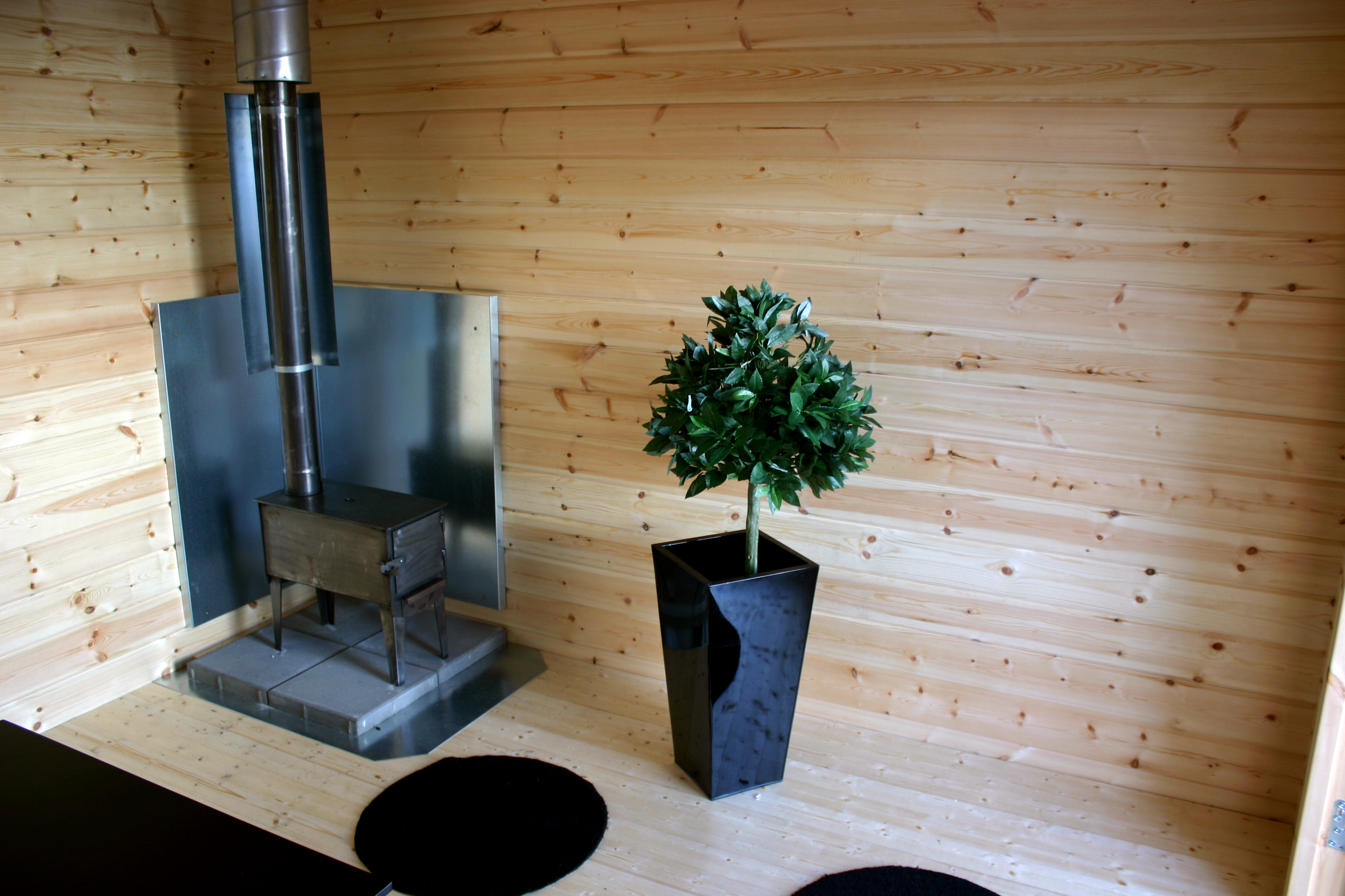 Stugan är i grunden helt oisolerad men man kan välja till tillvalspaket så att man kan isolera både golv, tak och väggar. Se fliken tillbehör.