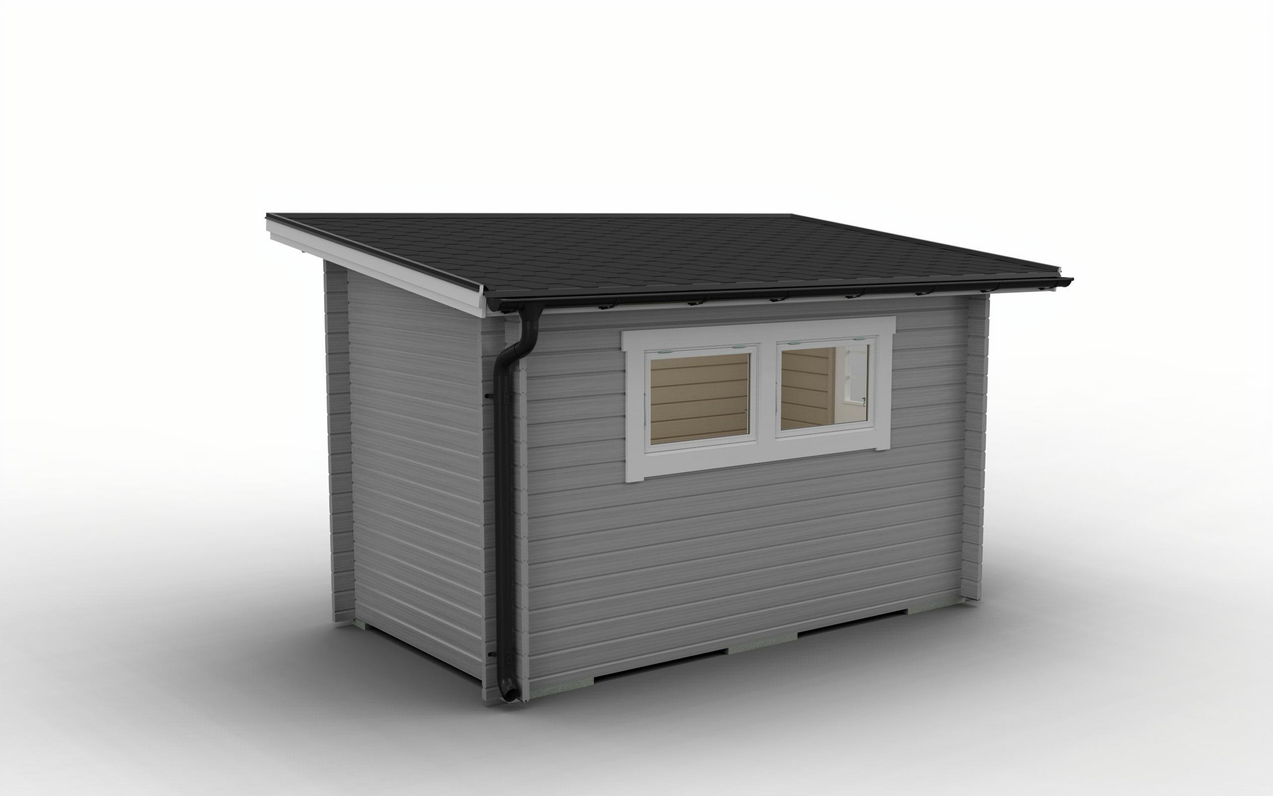 Stugan levereras som byggsats och kommer normalt i 2st virkespaket samt 1st ytterdörr i kartong, fönster som ingår packas normalt in i virkespaketen. Vikt totalt ca: 1030kg (per kolli: 750kg / 250kg / 30kg)