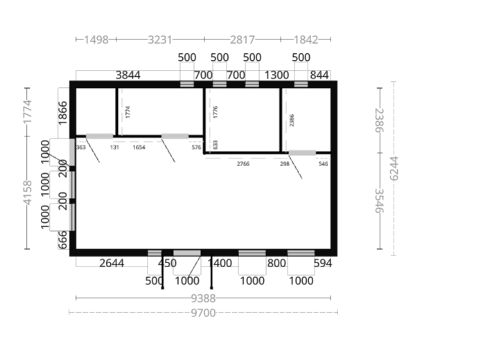 HUSKONFIGURATION - 1.0.1260588 ═══════════════════════════════════════════════════════════════ BYGGNAD: • Storlek: 6244×9700mm (60.57m²) • Total byggarea: 6244mm x 12100mm (75.55m²) • Vägghöjd - Väggpanel: 2.387m • Taktyp: Fackverktakstol () • Takfärg: Ingen • Takavvattning: Nej • Färg vägg: Obehandlad • Färg Vindskivor och foder: Grundmålad vit TEKNISKA SPECIFIKATIONER: • Takvinkel: 32° • Nockhöjd: 4.733m • Nocklängd: 13.080m • Längd Taknock till takfot: 4.233m • Undertak: Undertak med kondensduk & läkt CARPORT: • Bredd: 0mm • Längd: 2400mm ISOLERING: • Tak: 145mm • Vägg: 95.00mm OSB: • Tak m²: 60.14 • Vägg m²: 152.65 INNERVÄGG: Storlek m²: 38.17 Dörr: 3x Innerdörr 8x21 Tillbehör: MODULER (33 st totalt): • 1X Modul Altandörr helglas med spanjolett 10x21 (trä/trä) - m12 • 2X Modul h4v • 5X Modul m6 • 2X Modul h4h • 2X Modul m3 • 2X Modul 10x18 3-glasfönster fast dubbelhärdat - m12 • 2X Modul h4v • 5X Modul m6 • 2X Modul h4h • 2X Modul m3 • 2X Modul 10x12 3-glasfönster 1-luft vridfönster - m12 • 2X Modul h4v • 5X Modul m6 • 2X Modul h4h • 2X Modul m3 • 1X Modul Ytterdörr med smalt fönster 10x21 - m12 • 2X Modul h4v • 5X Modul m6 • 2X Modul h4h • 2X Modul m3 • 1X Modul 5x18 3-glasfönster fast dubbelhärdat - m12 • 2X Modul h4v • 5X Modul m6 • 2X Modul h4h • 2X Modul m3 • 1X Modul 5x5 2-glasfönster sidohängt - m12 • 2X Modul h4v • 5X Modul m6 • 2X Modul h4h • 2X Modul m3 • 3X Modul 5x12 2-glasfönster sidohängt - m12 • 2X Modul h4v • 5X Modul m6 • 2X Modul h4h • 2X Modul m3 • 2X Modul h4v • 5X Modul m6 • 2X Modul h4h • 2X Modul m3